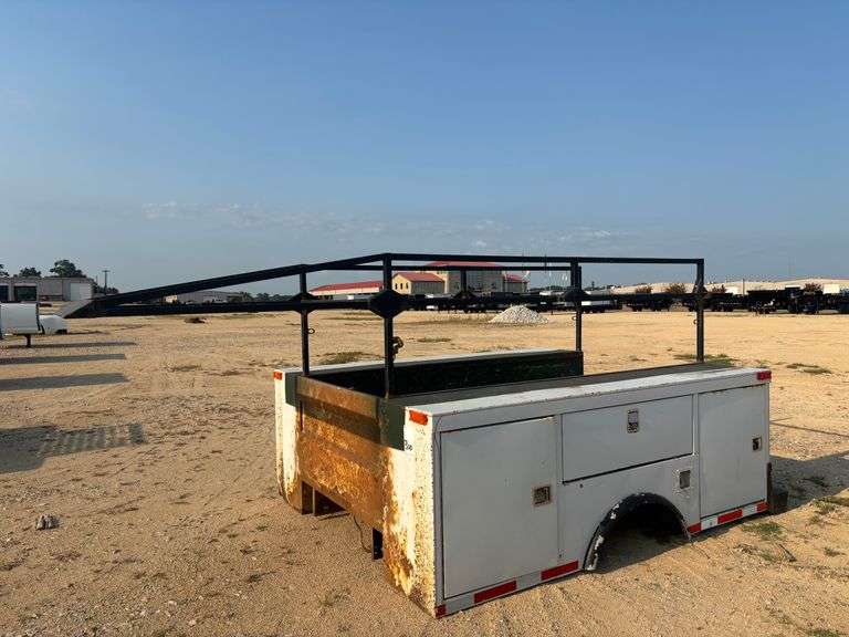 UTILITY TRUCK BED w/ OVERHEAD RACK. Current condition unknown. This item is "Used" and may contain unknown defects. BIDDER IS RESPONSIBLE FOR INSPECTING MERCHANDISE BEFORE BIDDING. THIS INFORMATION IS BELIEVED TO BE TRUE TO THE BEST OF KNOWLEDGE AND IS TO BE USED AS A GUIDE ONLY. ITEM IS BEING SOLD AS IS, WHERE IS WITH ALL FAULTS AND DEFECTS. NO WARRANTIES OR GUARANTEES IMPLIED OR EXPRESSED. UNLESS TAX EXEMPT FOR RESALE, ALL APPLICABLE SALES TAXES WILL APPLY TO THIS ITEM. Any discrepancies with any item must be brought to the seller's attention before item is removed from premises.