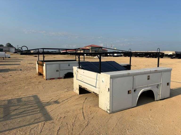 UTILITY TRUCK BED w/ OVERHEAD RACK. Will also come with a bed cover. Current condition unknown. This item is "Used" and may contain unknown defects. BIDDER IS RESPONSIBLE FOR INSPECTING MERCHANDISE BEFORE BIDDING. THIS INFORMATION IS BELIEVED TO BE TRUE TO THE BEST OF KNOWLEDGE AND IS TO BE USED AS A GUIDE ONLY. ITEM IS BEING SOLD AS IS, WHERE IS WITH ALL FAULTS AND DEFECTS. NO WARRANTIES OR GUARANTEES IMPLIED OR EXPRESSED. UNLESS TAX EXEMPT FOR RESALE, ALL APPLICABLE SALES TAXES WILL APPLY TO THIS ITEM. Any discrepancies with any item must be brought to the seller's attention before item is removed from premises.