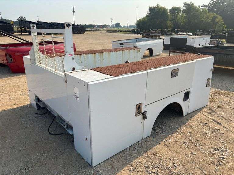 UTILITY TRUCK BED. Current condition unknown. This item is "Used" and may contain unknown defects. BIDDER IS RESPONSIBLE FOR INSPECTING MERCHANDISE BEFORE BIDDING. THIS INFORMATION IS BELIEVED TO BE TRUE TO THE BEST OF KNOWLEDGE AND IS TO BE USED AS A GUIDE ONLY. ITEM IS BEING SOLD AS IS, WHERE IS WITH ALL FAULTS AND DEFECTS. NO WARRANTIES OR GUARANTEES IMPLIED OR EXPRESSED. UNLESS TAX EXEMPT FOR RESALE, ALL APPLICABLE SALES TAXES WILL APPLY TO THIS ITEM. Any discrepancies with any item must be brought to the seller's attention before item is removed from premises.