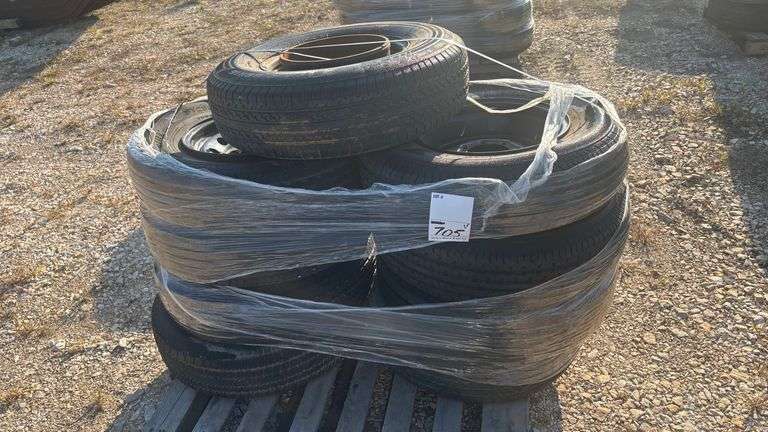 (9) TANDEM DUAL TIRES & WHEELS. Current condition unknown. This item may contain unknown defects. BIDDER IS RESPONSIBLE FOR INSPECTING MERCHANDISE BEFORE BIDDING. THIS INFORMATION IS BELIEVED TO BE TRUE TO THE BEST OF KNOWLEDGE AND IS TO BE USED AS A GUIDE ONLY. ITEM IS BEING SOLD AS IS, WHERE IS WITH ALL FAULTS AND DEFECTS. NO WARRANTIES OR GUARANTEES IMPLIED OR EXPRESSED. UNLESS TAX EXEMPT FOR RESALE, FARM USE, OR OTHER, ALL APPLICABLE SALES TAXES AND FUEL SURCHARGES WILL APPLY TO THIS ITEM. Any discrepancies with any item must be brought to the seller's attention before item is removed from premises.