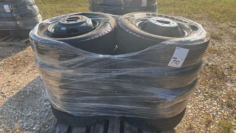 (10) TANDEM DUAL TIRES & WHEELS. Current condition unknown. This item may contain unknown defects. BIDDER IS RESPONSIBLE FOR INSPECTING MERCHANDISE BEFORE BIDDING. THIS INFORMATION IS BELIEVED TO BE TRUE TO THE BEST OF KNOWLEDGE AND IS TO BE USED AS A GUIDE ONLY. ITEM IS BEING SOLD AS IS, WHERE IS WITH ALL FAULTS AND DEFECTS. NO WARRANTIES OR GUARANTEES IMPLIED OR EXPRESSED. UNLESS TAX EXEMPT FOR RESALE, FARM USE, OR OTHER, ALL APPLICABLE SALES TAXES AND FUEL SURCHARGES WILL APPLY TO THIS ITEM. Any discrepancies with any item must be brought to the seller's attention before item is removed from premises.