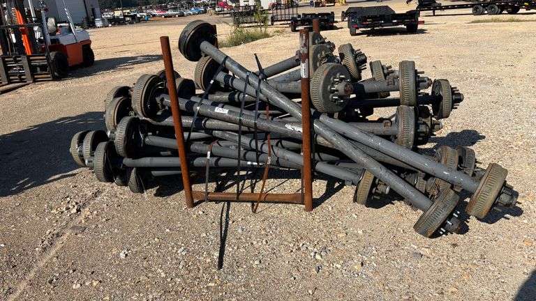 (21) TRAILER AXLES. Current condition unknown. This item may contain unknown defects. BIDDER IS RESPONSIBLE FOR INSPECTING MERCHANDISE BEFORE BIDDING. THIS INFORMATION IS BELIEVED TO BE TRUE TO THE BEST OF KNOWLEDGE AND IS TO BE USED AS A GUIDE ONLY. ITEM IS BEING SOLD AS IS, WHERE IS WITH ALL FAULTS AND DEFECTS. NO WARRANTIES OR GUARANTEES IMPLIED OR EXPRESSED. UNLESS TAX EXEMPT FOR RESALE, FARM USE, OR OTHER, ALL APPLICABLE SALES TAXES AND FUEL SURCHARGES WILL APPLY TO THIS ITEM. Any discrepancies with any item must be brought to the seller's attention before item is removed from premises.