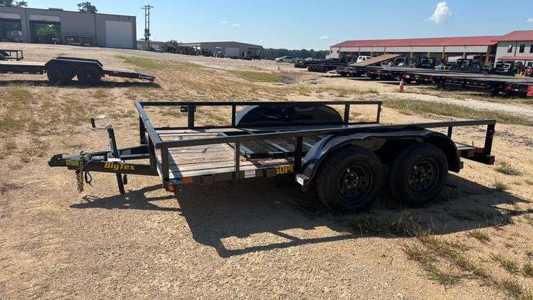 2025 BIG TEX 60PI-12BK4RG BUMPER PULL TRAILER - VIN: 16V1U1525S3416642. GVWR: 6,000 lbs. Approximately 77" wide and 12' long. Tire size: 205/75 R15. Has damaged fenders. WILL COME WITH A MCO OR A TITLE. Current condition unknown. This item may contain unknown defects. BIDDER IS RESPONSIBLE FOR INSPECTING MERCHANDISE BEFORE BIDDING. THIS INFORMATION IS BELIEVED TO BE TRUE TO THE BEST OF KNOWLEDGE AND IS TO BE USED AS A GUIDE ONLY. ITEM IS BEING SOLD AS IS, WHERE IS WITH ALL FAULTS AND DEFECTS. NO WARRANTIES OR GUARANTEES IMPLIED OR EXPRESSED. Any discrepancies with any item must be brought to the seller's attention before item is removed from premises.