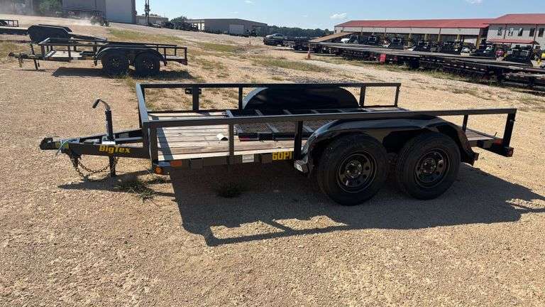 2025 BIG TEX 60PI-12BK4RG BUMPER PULL TRAILER - VIN: 16V1U152XS3416636. GVWR: 6,000 lbs. Approximately 77" wide and 12' long. Tire size: 205/75 R15. Has damaged fenders. WILL COME WITH A MCO OR A TITLE. Current condition unknown. This item may contain unknown defects. BIDDER IS RESPONSIBLE FOR INSPECTING MERCHANDISE BEFORE BIDDING. THIS INFORMATION IS BELIEVED TO BE TRUE TO THE BEST OF KNOWLEDGE AND IS TO BE USED AS A GUIDE ONLY. ITEM IS BEING SOLD AS IS, WHERE IS WITH ALL FAULTS AND DEFECTS. NO WARRANTIES OR GUARANTEES IMPLIED OR EXPRESSED. Any discrepancies with any item must be brought to the seller's attention before item is removed from premises.