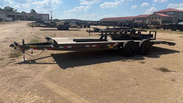 2025 BIG TEX 14EB-22D2A-KRBR BUMPER PULL TRAILER - VIN: 16V1C2726S3416686. GVWR:14,000 lbs. Approximately 83" wide and 22' long. Tire size: 235/80 R16. Has damaged fenders and light brackets. WILL COME WITH A MCO OR A TITLE. Current condition unknown. This item may contain unknown defects. BIDDER IS RESPONSIBLE FOR INSPECTING MERCHANDISE BEFORE BIDDING. THIS INFORMATION IS BELIEVED TO BE TRUE TO THE BEST OF KNOWLEDGE AND IS TO BE USED AS A GUIDE ONLY. ITEM IS BEING SOLD AS IS, WHERE IS WITH ALL FAULTS AND DEFECTS. NO WARRANTIES OR GUARANTEES IMPLIED OR EXPRESSED. Any discrepancies with any item must be brought to the seller's attention before item is removed from premises.
