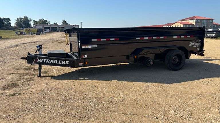 2024 PJ 1D222 BUMPER PULL DUMP TRAILER - VIN: 4P51D2221R1403176. GVWR: 20,000 lbs. Approximately 83" wide and 16' long. Tire size: 235/75 R17.5. Has a spare tire and pullout ramps (one ramp appears to be stuck and will not pull out). Tongue is bent/buckled. Welds are broken on the front crossmember. Does not have a tailgate or tarp. WILL COME WITH A MCO OR A TITLE. Current condition unknown. This item may contain unknown defects. BIDDER IS RESPONSIBLE FOR INSPECTING MERCHANDISE BEFORE BIDDING. THIS INFORMATION IS BELIEVED TO BE TRUE TO THE BEST OF KNOWLEDGE AND IS TO BE USED AS A GUIDE ONLY. ITEM IS BEING SOLD AS IS, WHERE IS WITH ALL FAULTS AND DEFECTS. NO WARRANTIES OR GUARANTEES IMPLIED OR EXPRESSED. Any discrepancies with any item must be brought to the seller's attention before item is removed from premises.