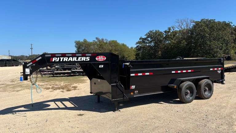 2025 PJ DE162 GOOSENECK DUMP TRAILER - VIN: 4P53D2622S4006373. GVWR: 22,500 lbs. Approximately 83" wide and 16' long. Tire size: 235/75 R17.5. Has a roll over tarp and pullout ramps. Was reported that the fenders were mounted incorrectly. Coupler not included. WILL COME WITH A MCO OR A TITLE. Current condition unknown. This item may contain unknown defects. BIDDER IS RESPONSIBLE FOR INSPECTING MERCHANDISE BEFORE BIDDING. THIS INFORMATION IS BELIEVED TO BE TRUE TO THE BEST OF KNOWLEDGE AND IS TO BE USED AS A GUIDE ONLY. ITEM IS BEING SOLD AS IS, WHERE IS WITH ALL FAULTS AND DEFECTS. NO WARRANTIES OR GUARANTEES IMPLIED OR EXPRESSED. Any discrepancies with any item must be brought to the seller's attention before item is removed from premises.